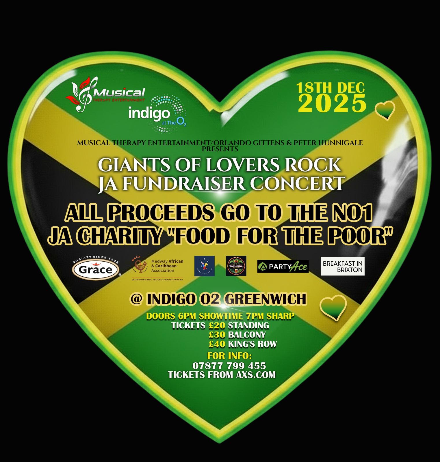 On 18th December 2025, the Indigo at The O2 in Greenwich will come alive with the unmistakable rhythms of Lovers Rock but this time, the music carries an even greater purpose. The Giants of Lovers Rock JA Fundraiser Concert, presented by Musical Therapy Entertainment, Orlando Gittens and Peter Hunnigale, is more than a show; it is a collective act of compassion for Jamaica at a time of profound need.