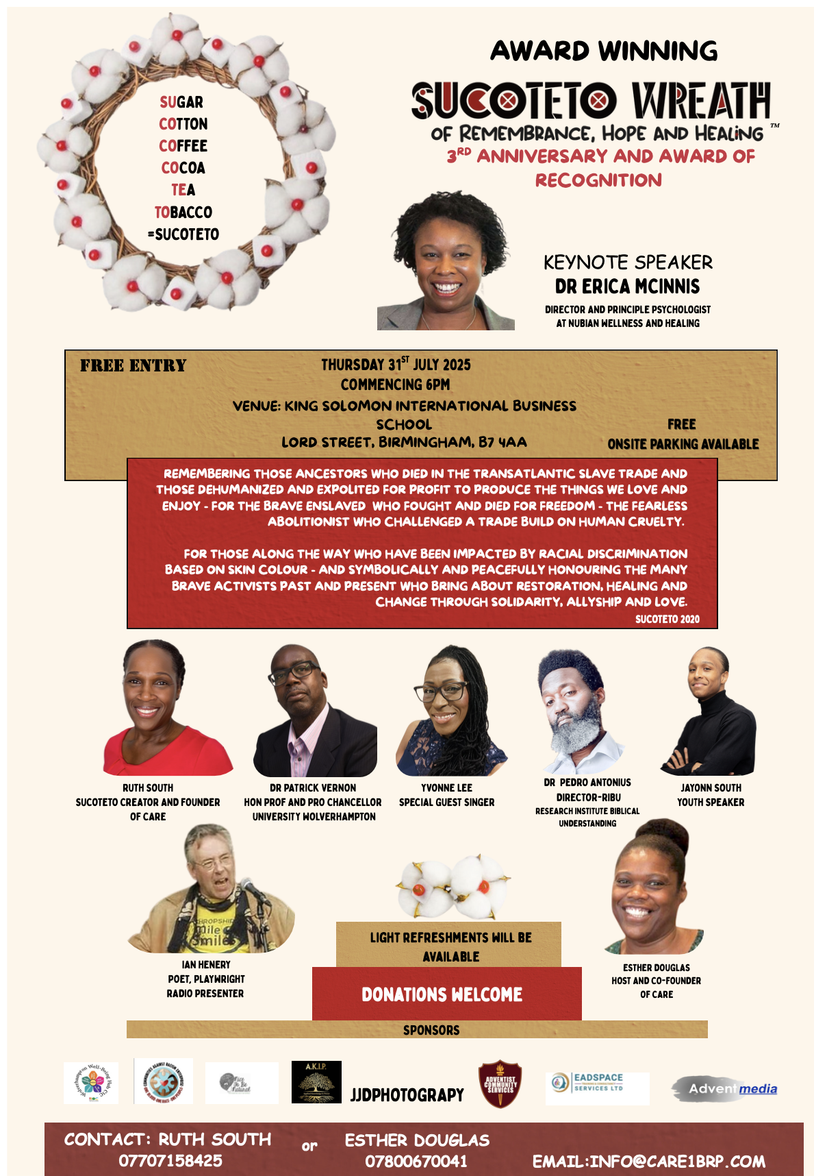 On Thursday 31 July 2025, the 3rd annual SUCOTETO gathering will take place at King Solomon International Business School in Birmingham, bringing communities together to honour the lives, labour, and legacies of those impacted by the Transatlantic Slave Trade and its enduring aftermath.